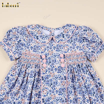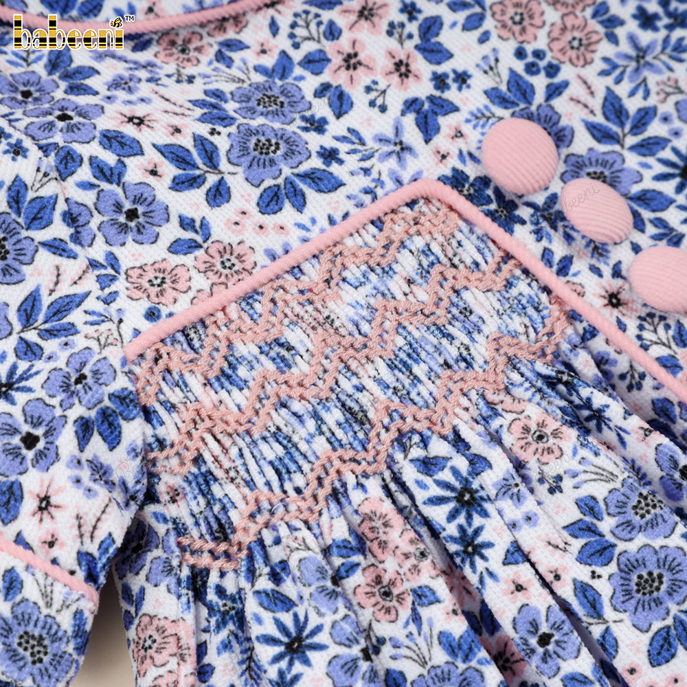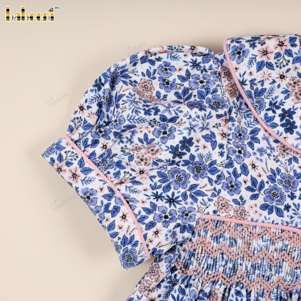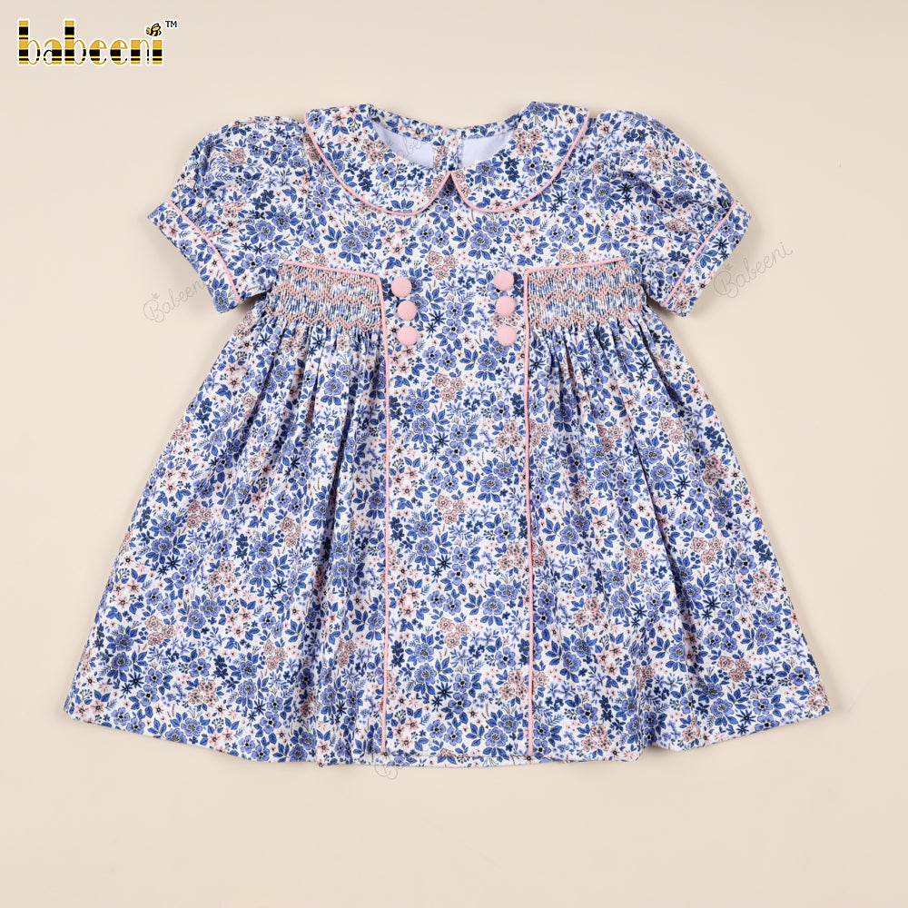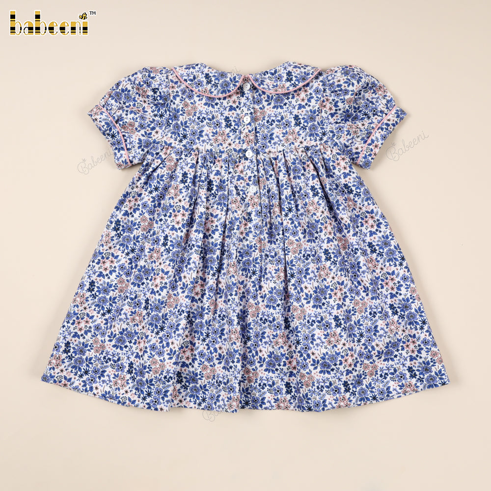 Feature: This sweet and sophisticated A-line dress is made from soft corduroy and features delicate side smocking for added texture and flexibility. The dress is accented with fabric-covered buttons, charming puffed sleeves, and a classic Peter Pan collar. A timeless piece ideal for cooler seasons, festive gatherings, or boutique collections.
