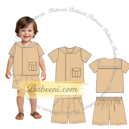 Feature: Sleek yet functional, this 2-piece Boys' Set is crafted from breathable cotton twill in a versatile beige tone. The set includes a short-sleeve shirt with chest patch pocket and matching shorts with comfortable elastic waistband.