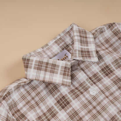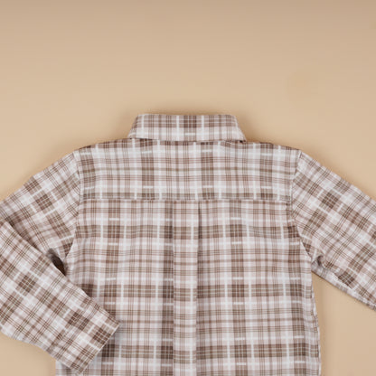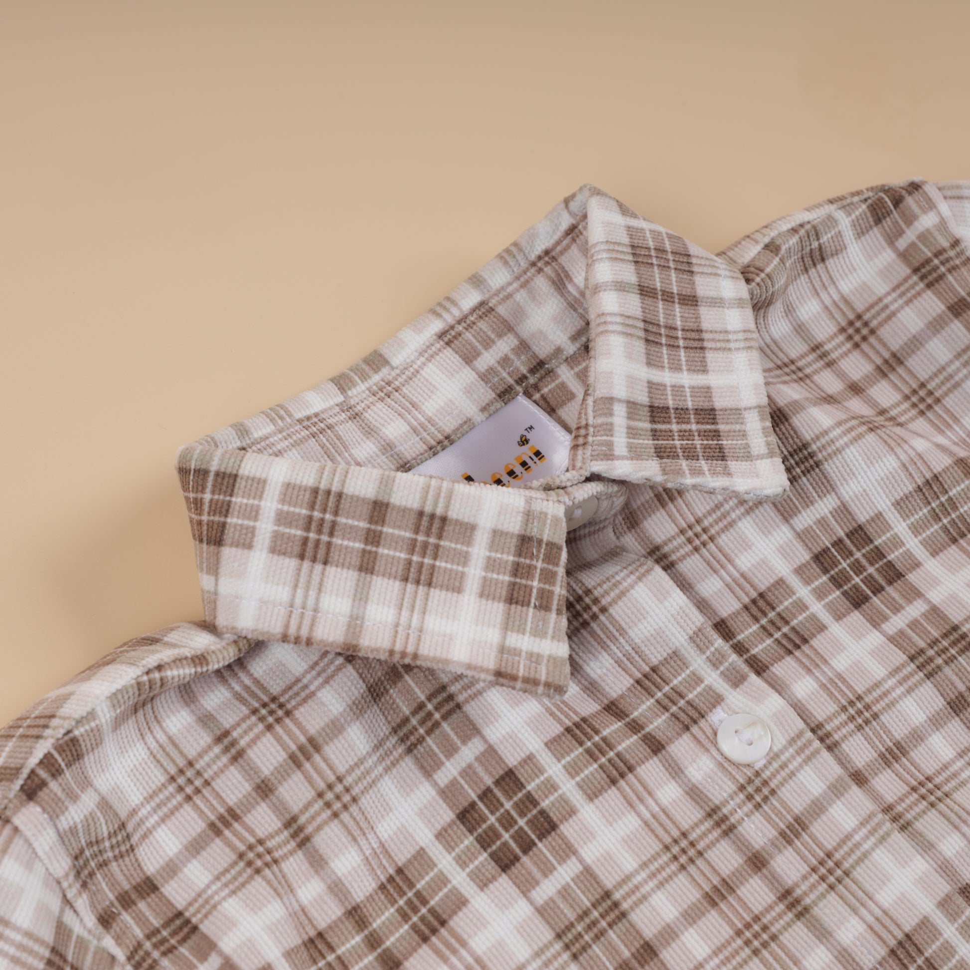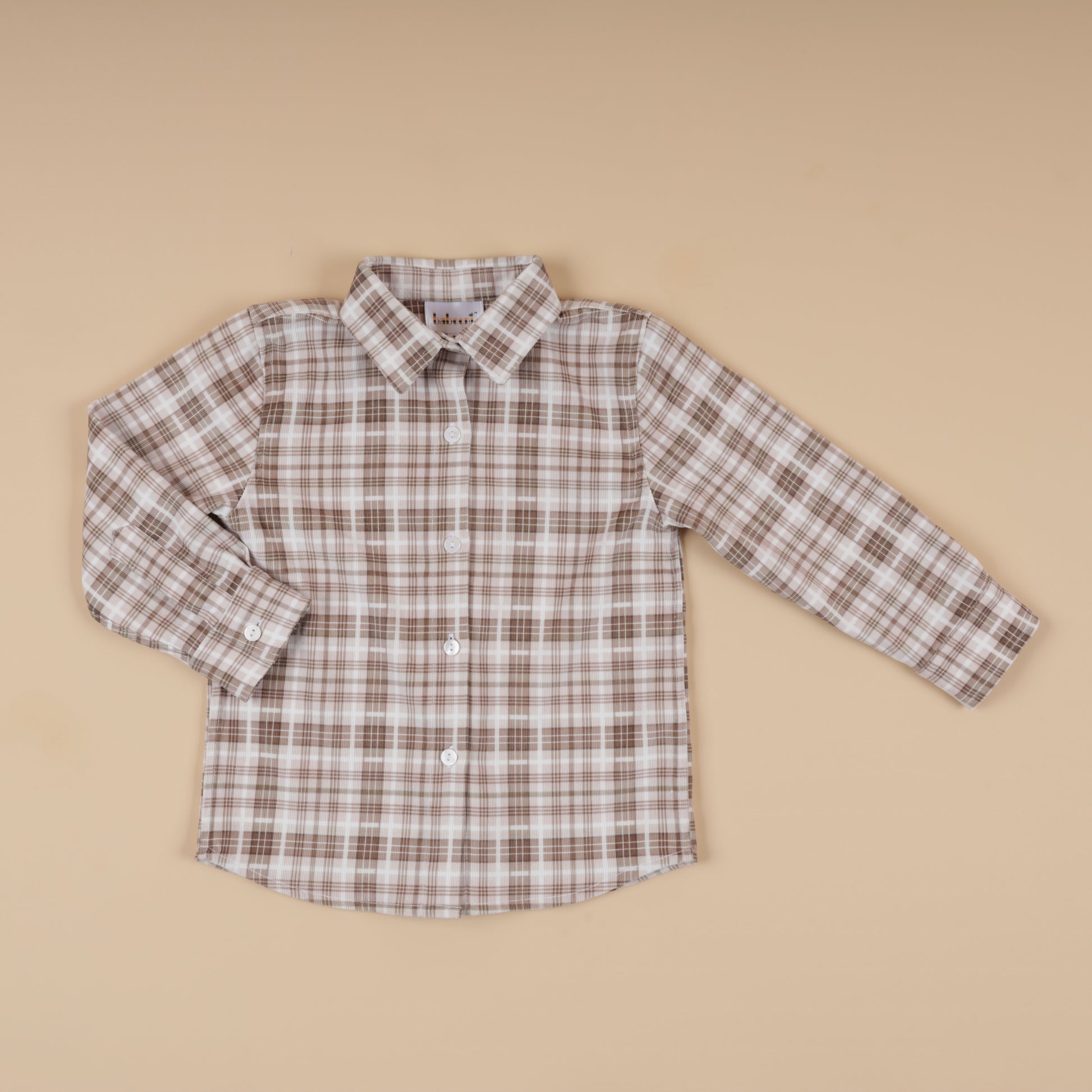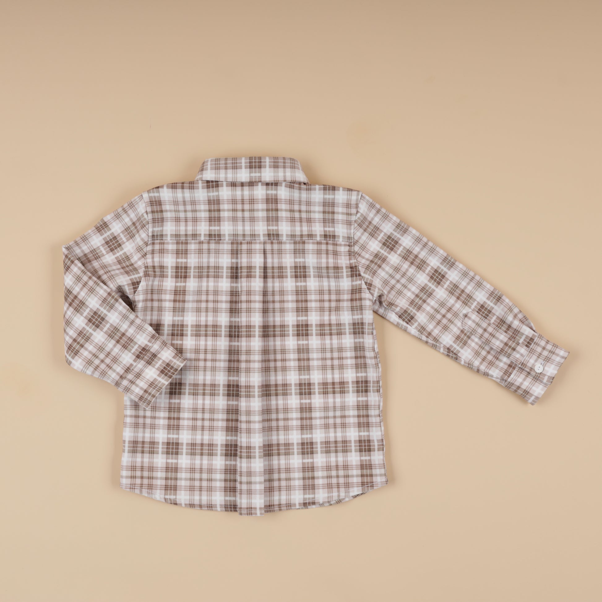 Feature: Long-sleeve boys’ shirt in lightweight printed corduroy with a classic check pattern. Designed with a neat collar and clean silhouette, offering a timeless layering piece for Fall Winter outfits.