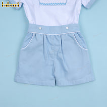 Boy Smocked Car White And Blue - BC1172