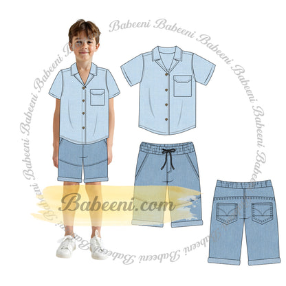 Boys' Linen Shirt and Denim Shorts Set - BC1325