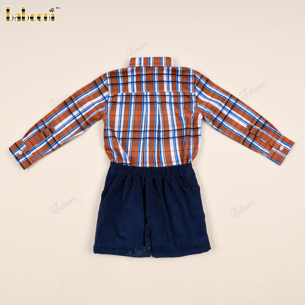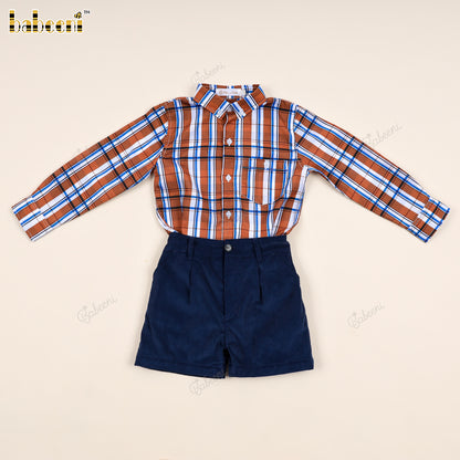 Boys' Navy Corduroy Pants and Piqué Shirt Set - VAB003