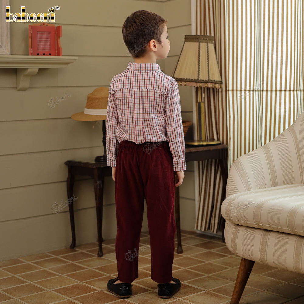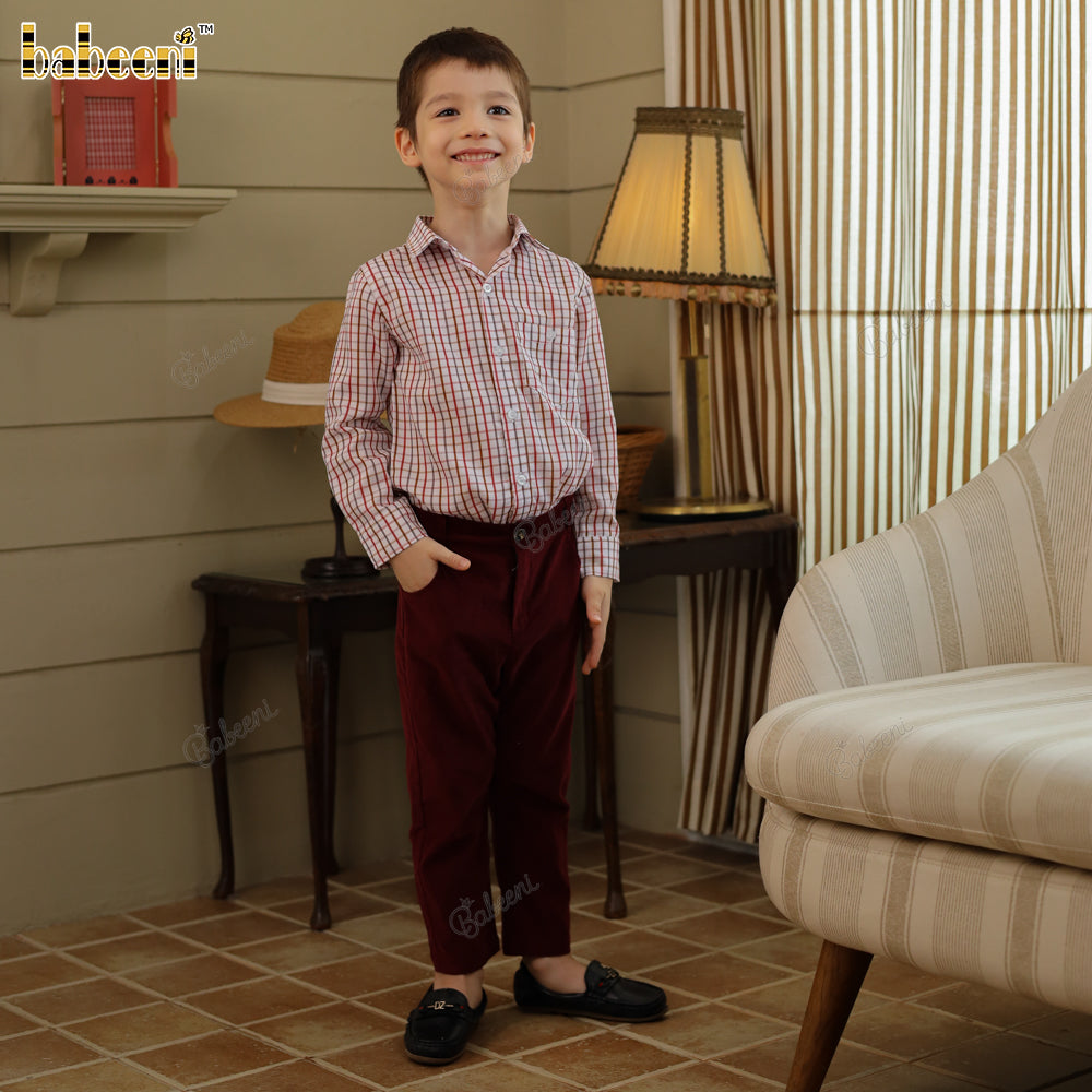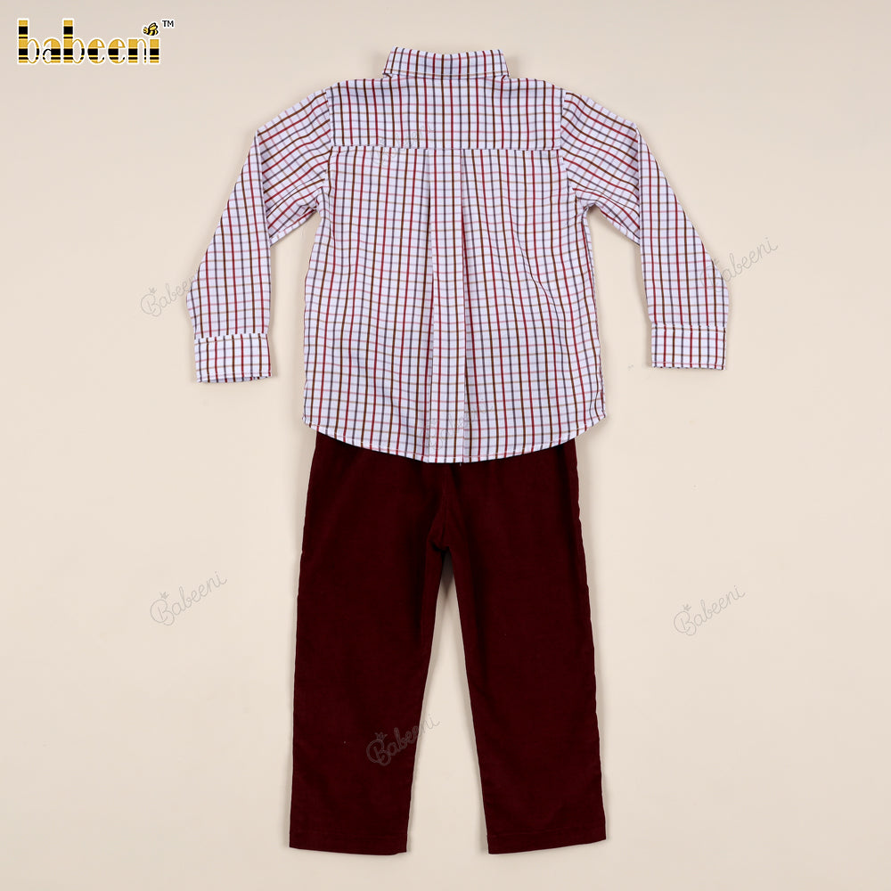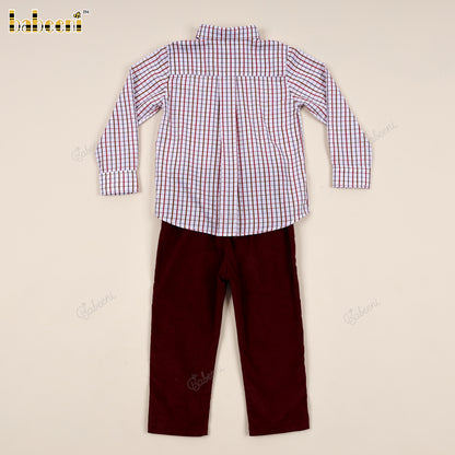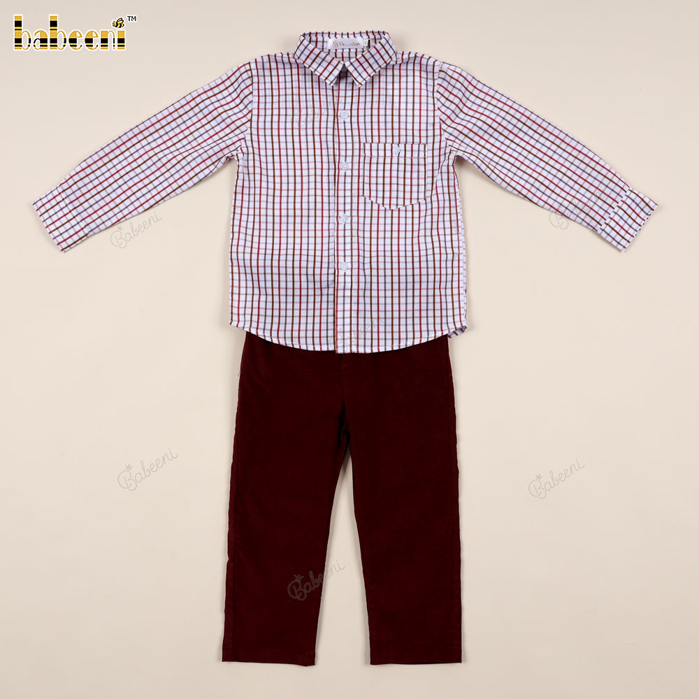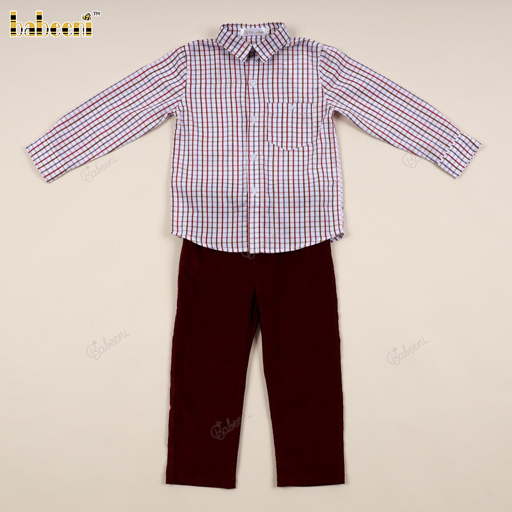 Boys' Piqué Shirt and Burgundy Corduroy Pants Set - VAB001