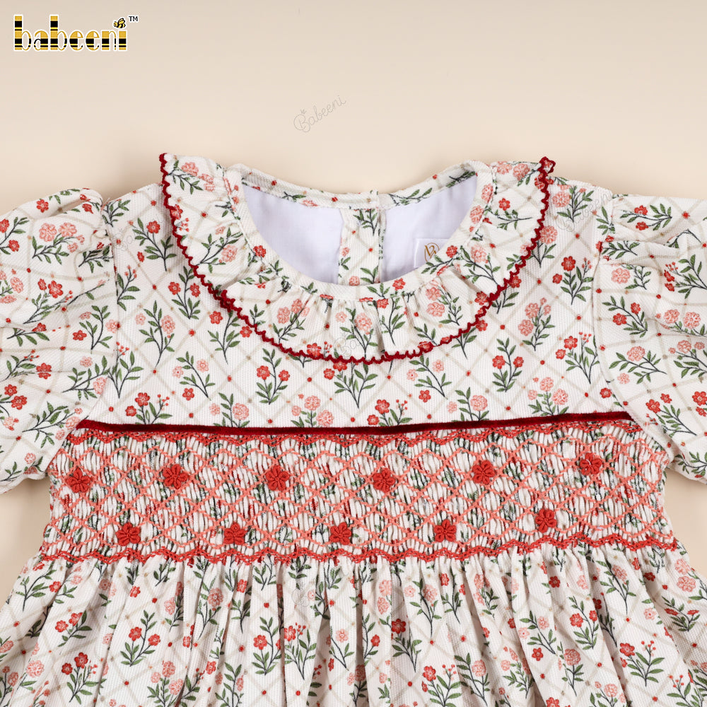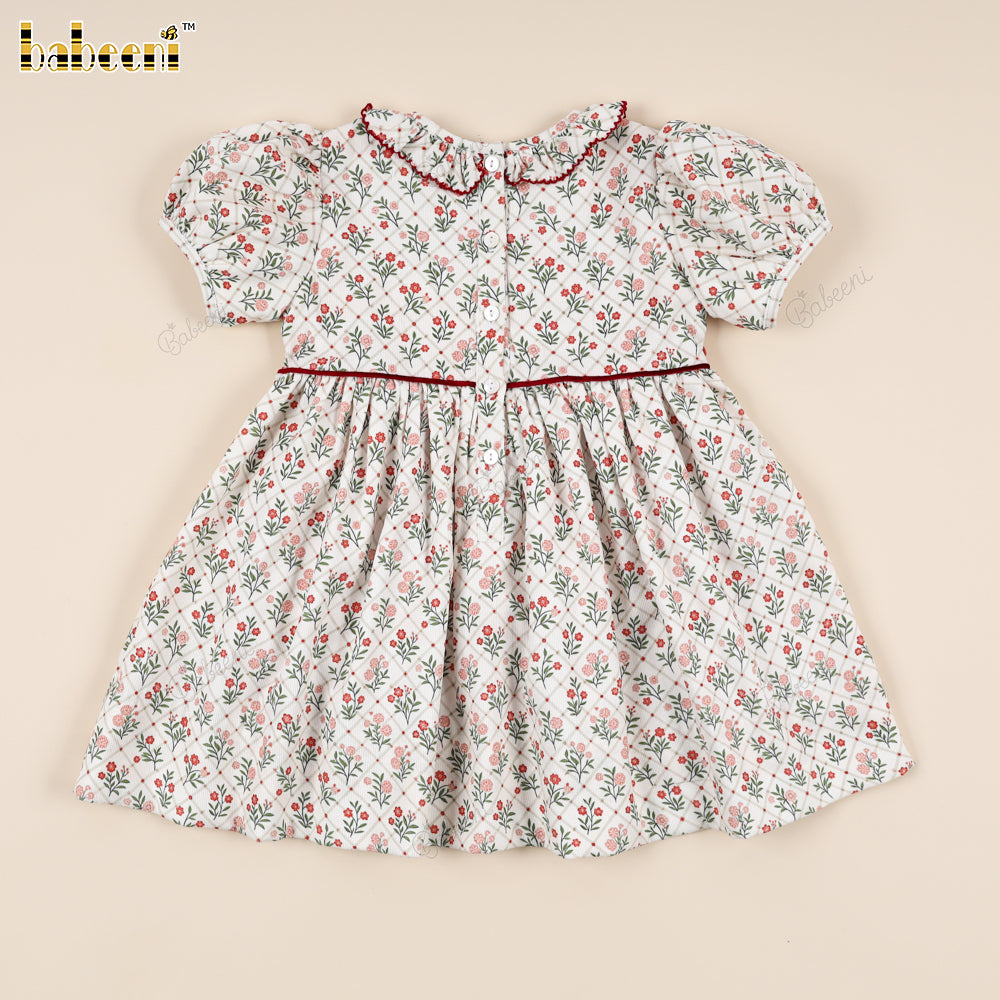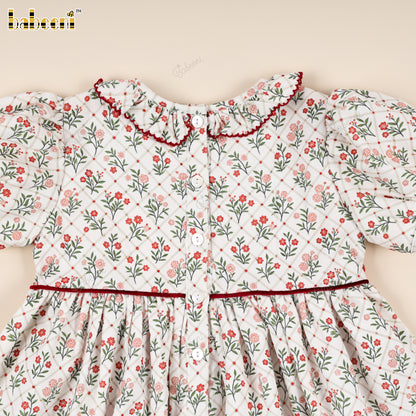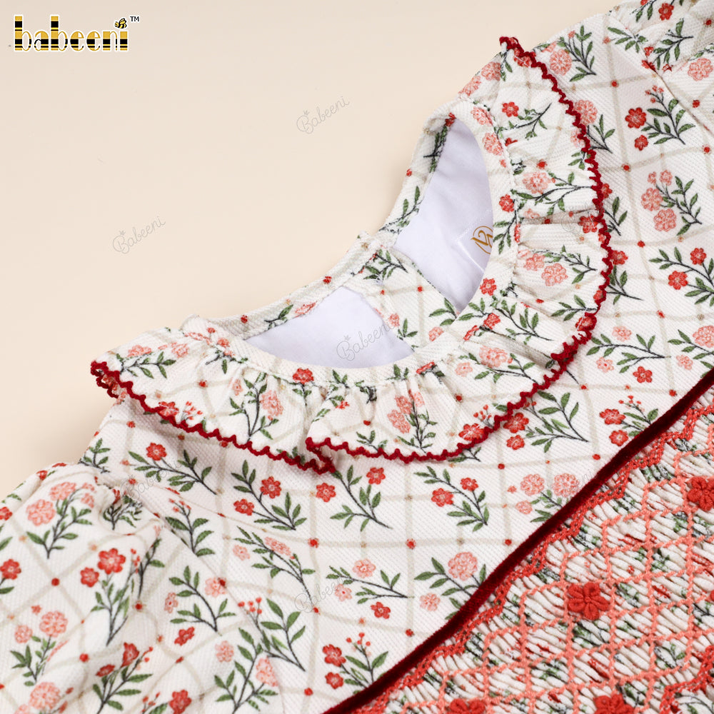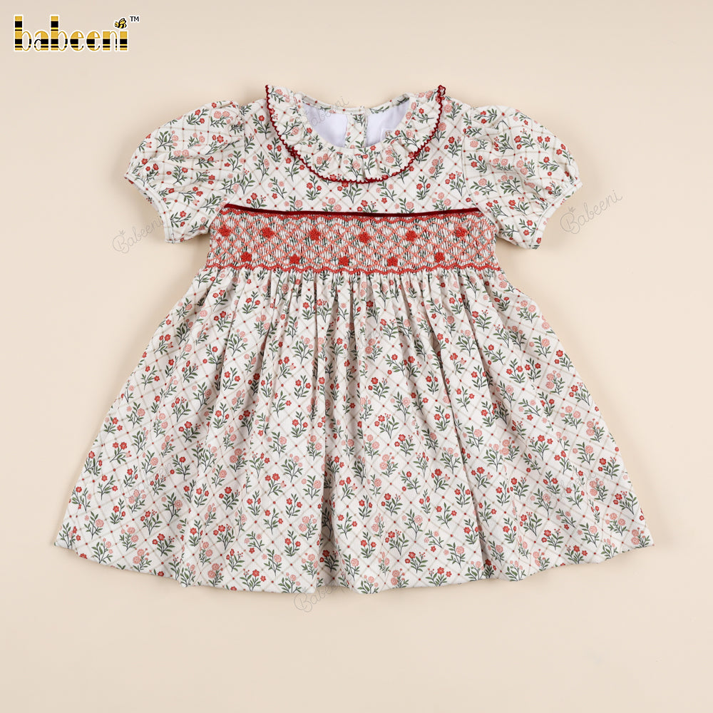 Classic Hand-Smocked Floral Dress with Ruffled Collar - VAG005