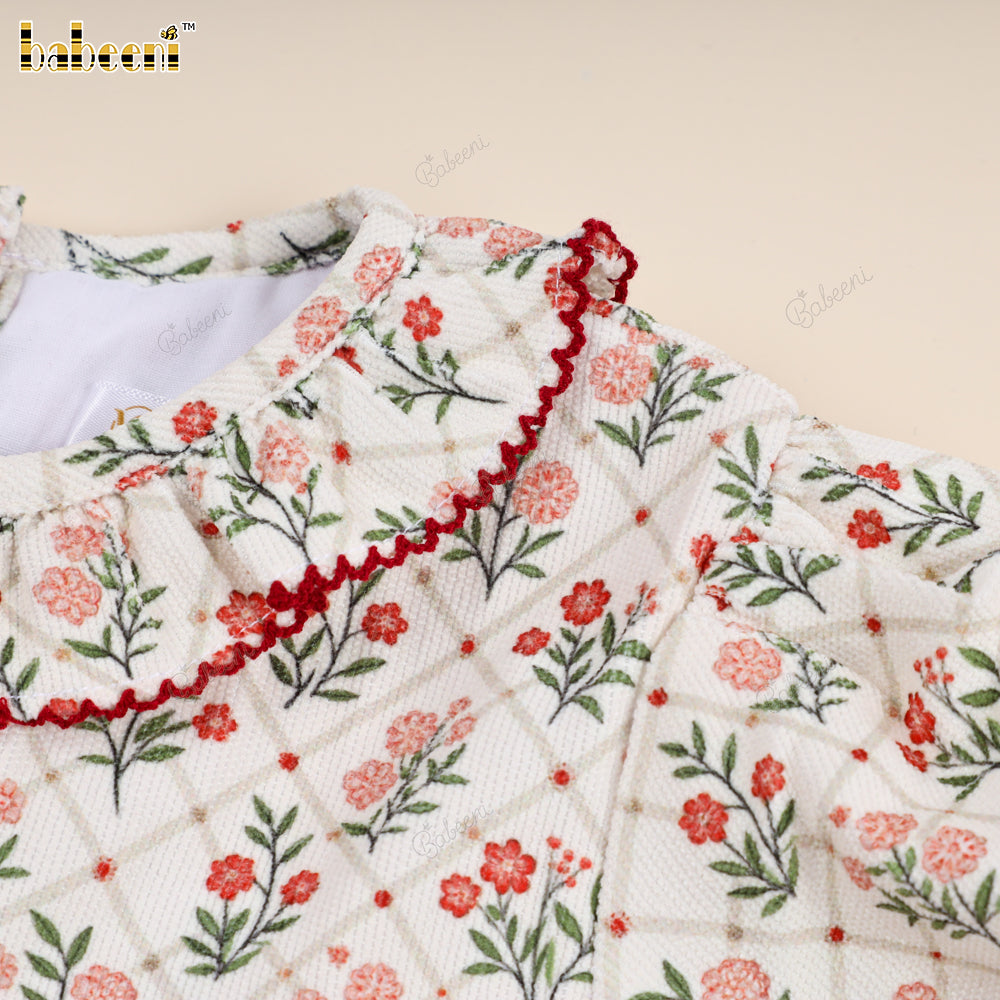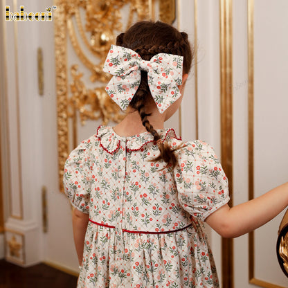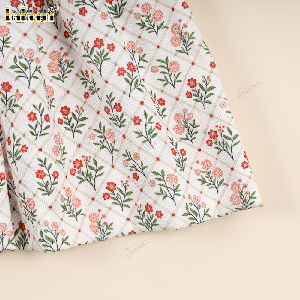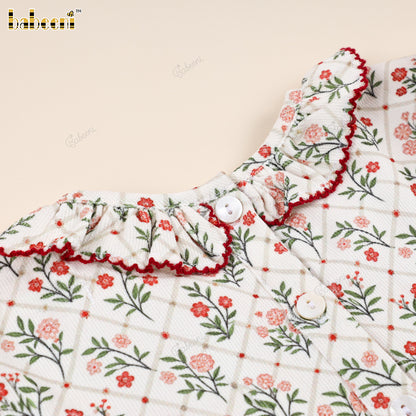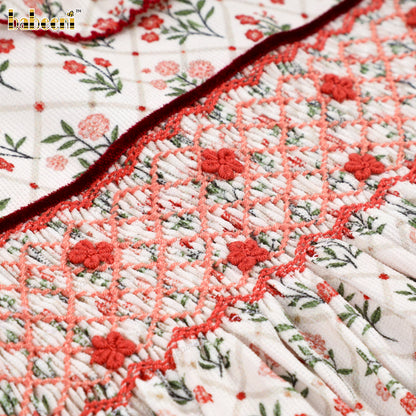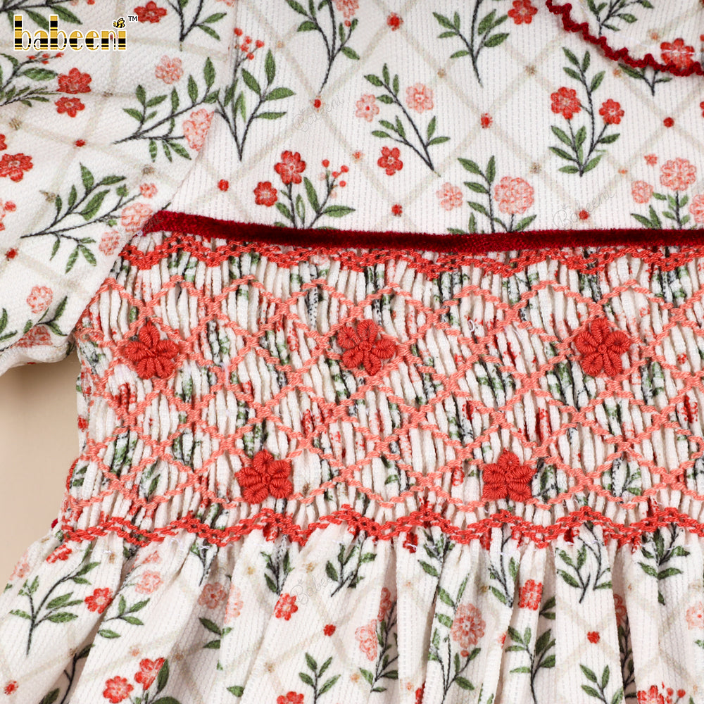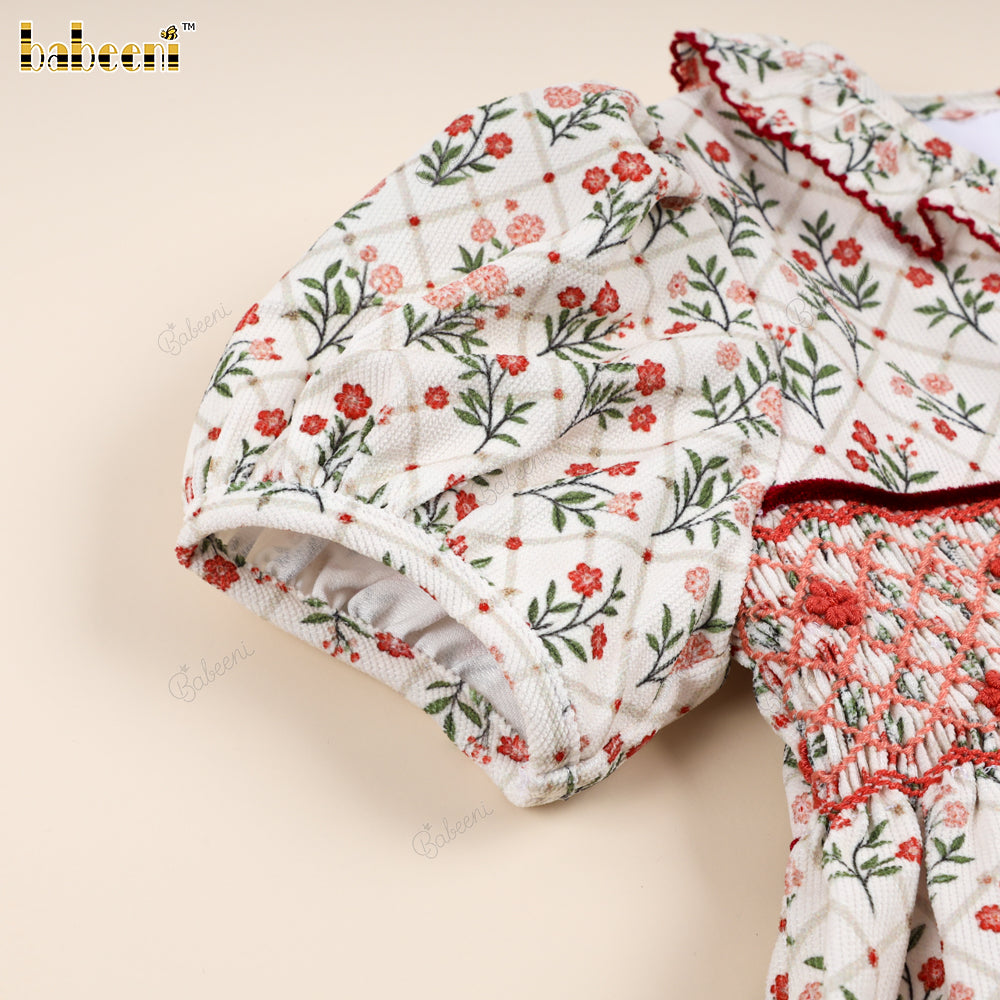 Classic Hand-Smocked Floral Dress with Ruffled Collar - VAG005
