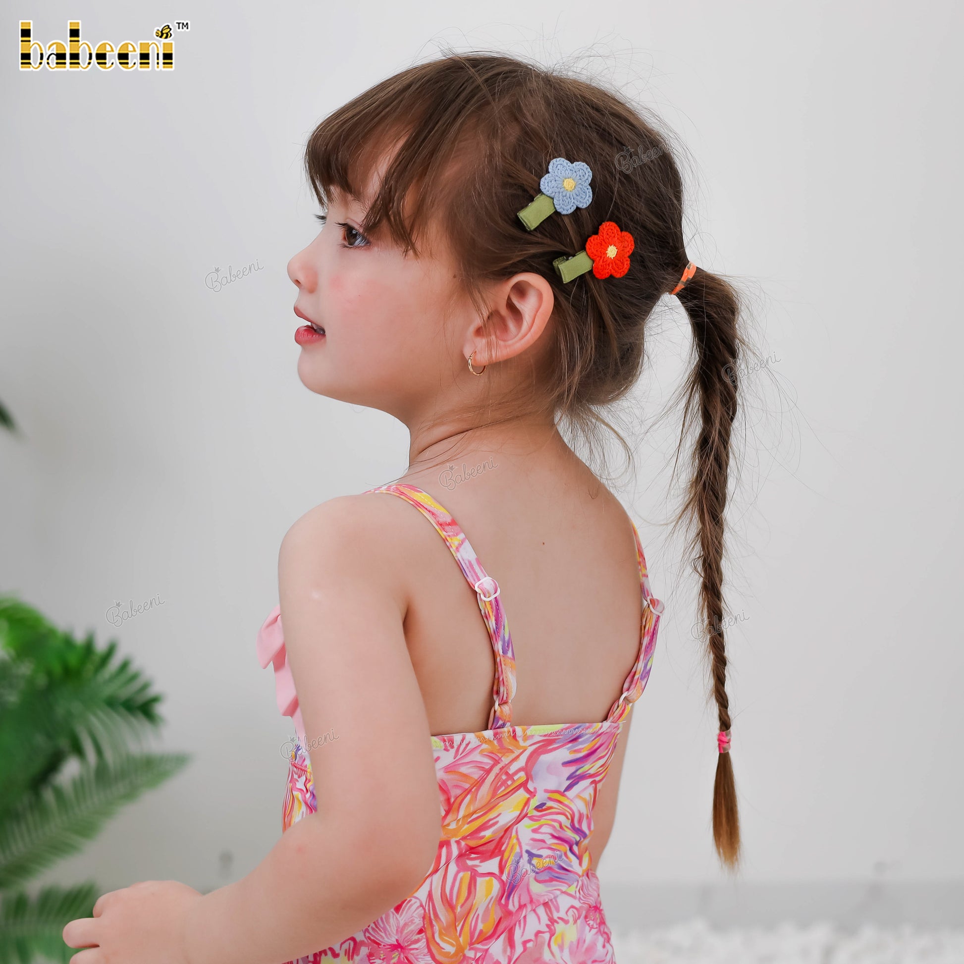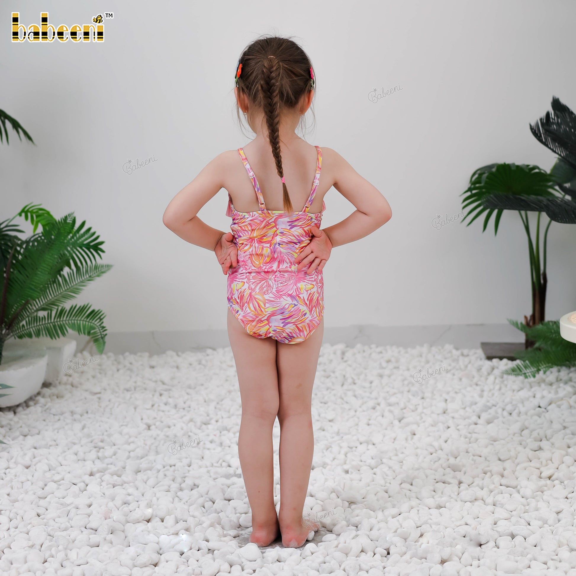 Features: A charming mini version of Mom’s swimsuit, this playful one-piece is decorated with the same lively neon tropical print. The neckline is accented with a soft ruffle detail for an adorable finish, while the flexible swim fabric ensures ease of movement and all-day comfort. Quick-drying and easy to wear, it’s perfect for seaside fun, water play, or summer vacations together with Mom.
