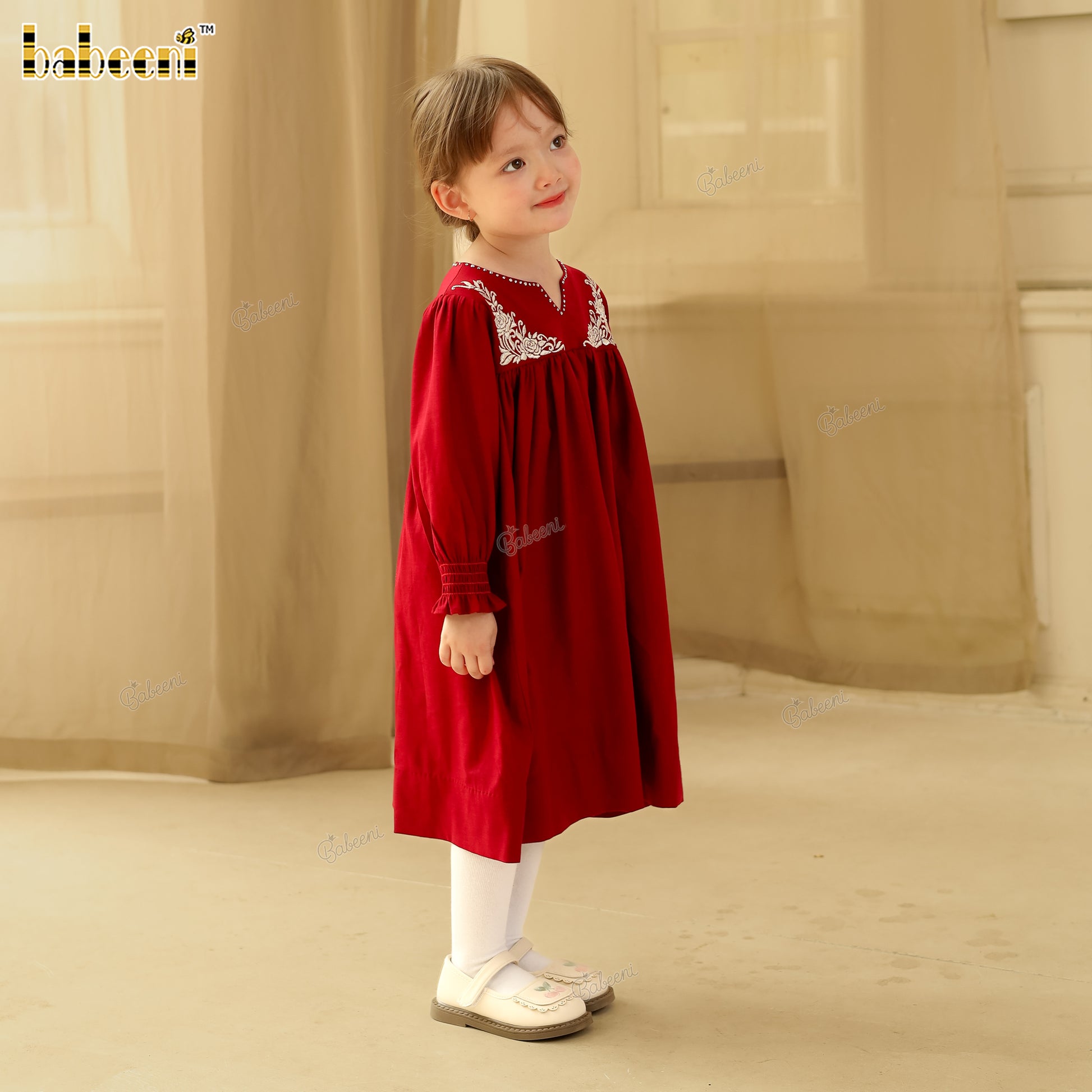 Feature: Comfortable flared dress adorned with silver thread embroidery and shimmering rhinestones along the neckline. The elastic cuffs provide a perfect, flexible fit while maintaining a refined, elegant look—ideal for festive occasions or daily wear with style.