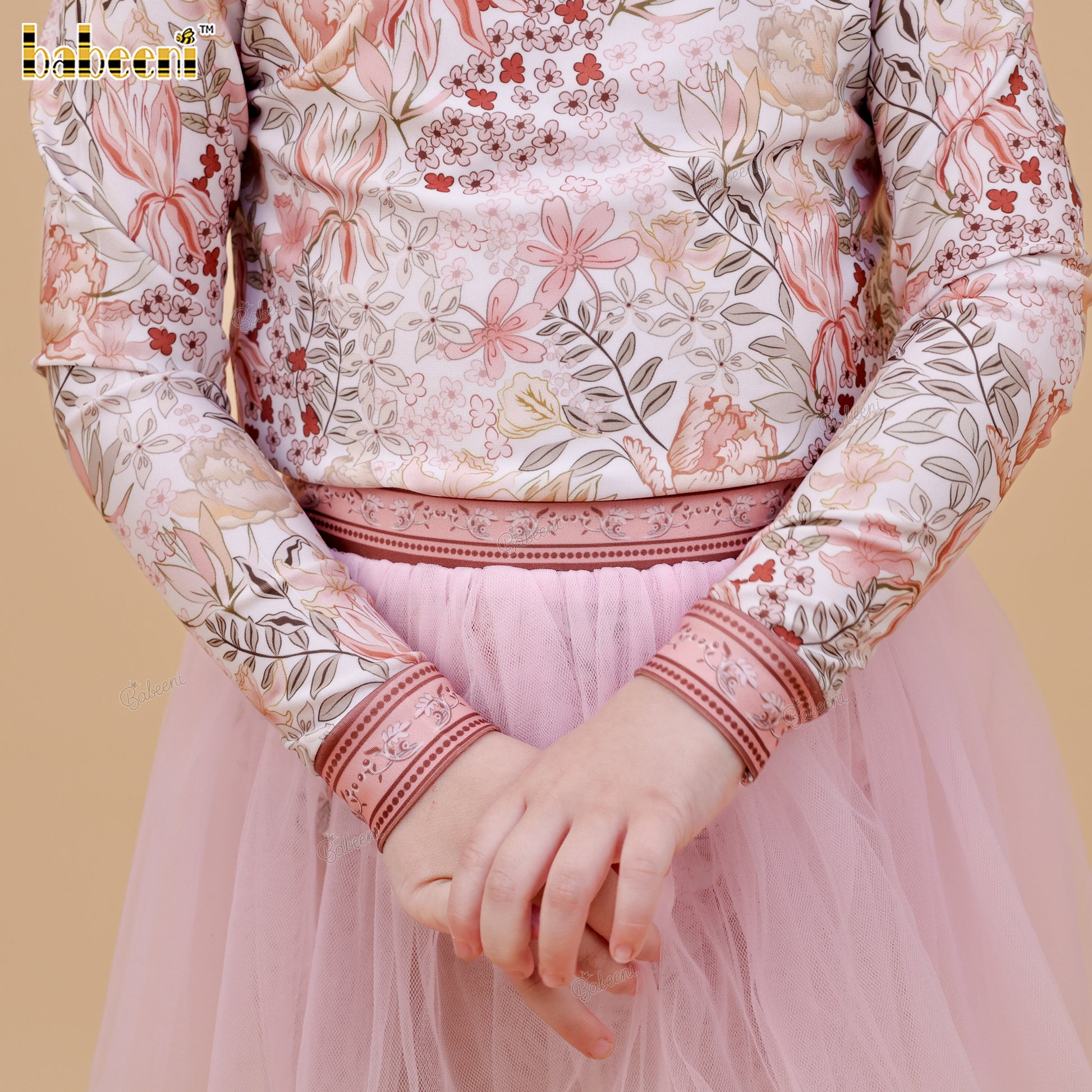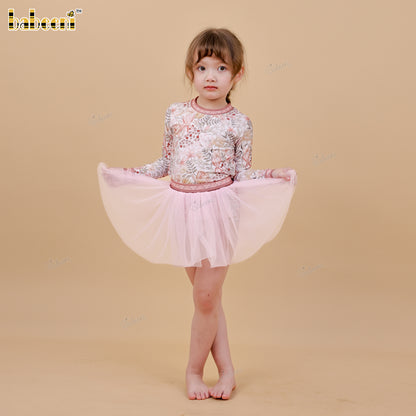 DR4534 - Floral Blush Rashguard Swim Set with Tulle Skirt