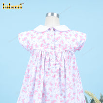 Geometric Smocked Dress With Pink Hand Embroidery Flowers For Girl - DR3688