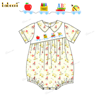 Girl Bubble Hand Smocked Back To School Theme - DR3959