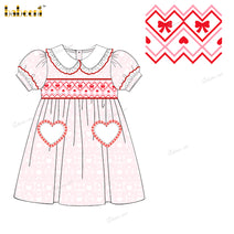 Girl Hand Smocke Tiny Heart Pattern Dress - DR3857