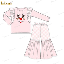 Girl Outfit In Pink With Reindeer Embroidered - DR4050