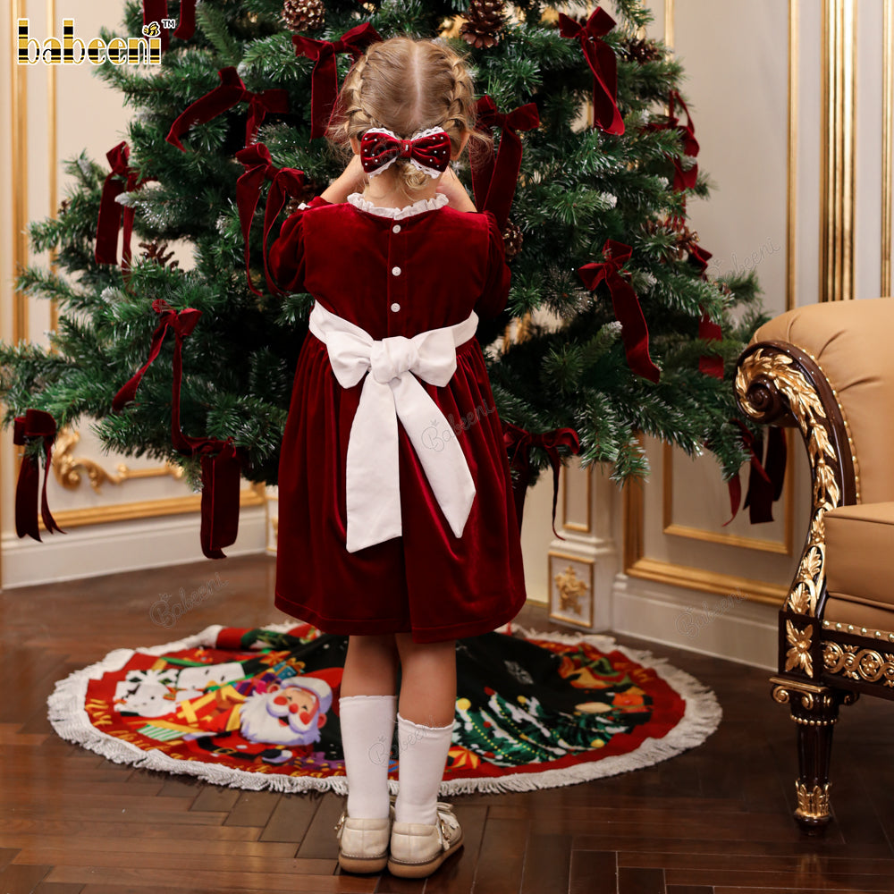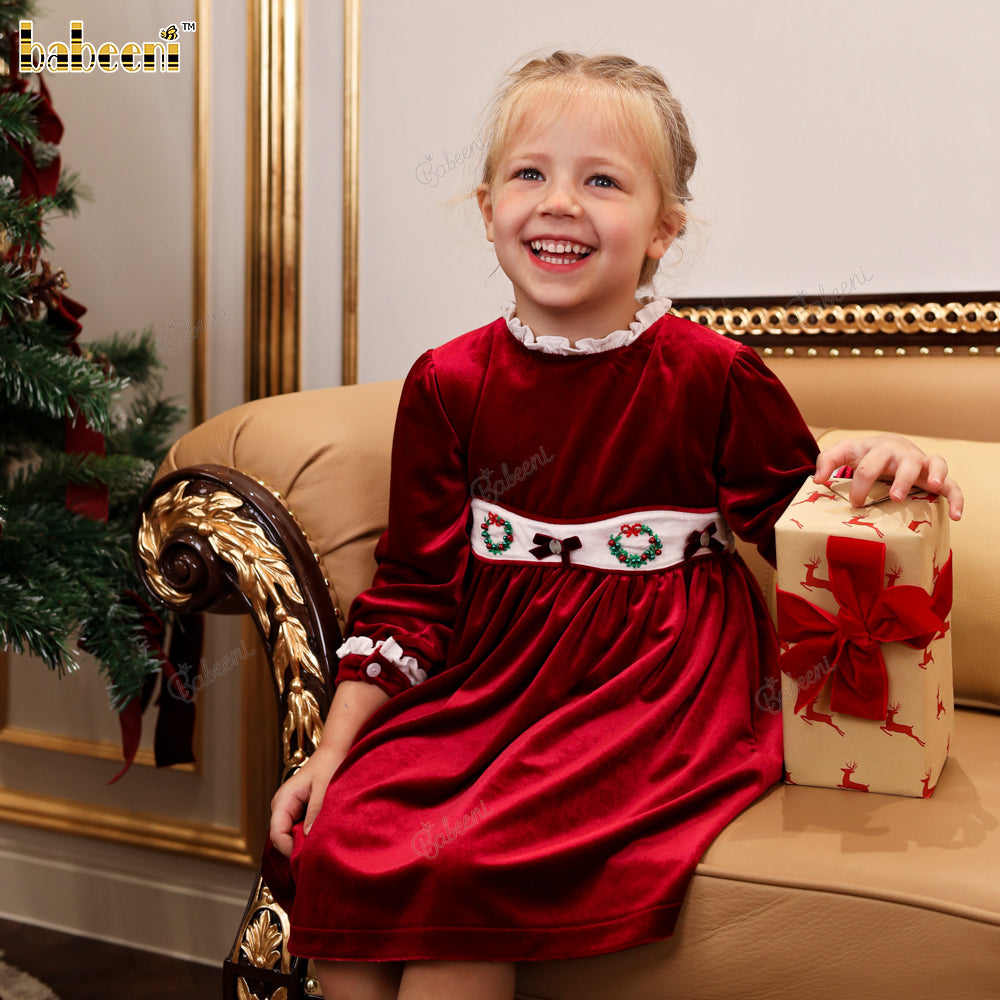 Girls' Red Velvet Christmas Dress with Signature Babeeni Accents - DR4300
