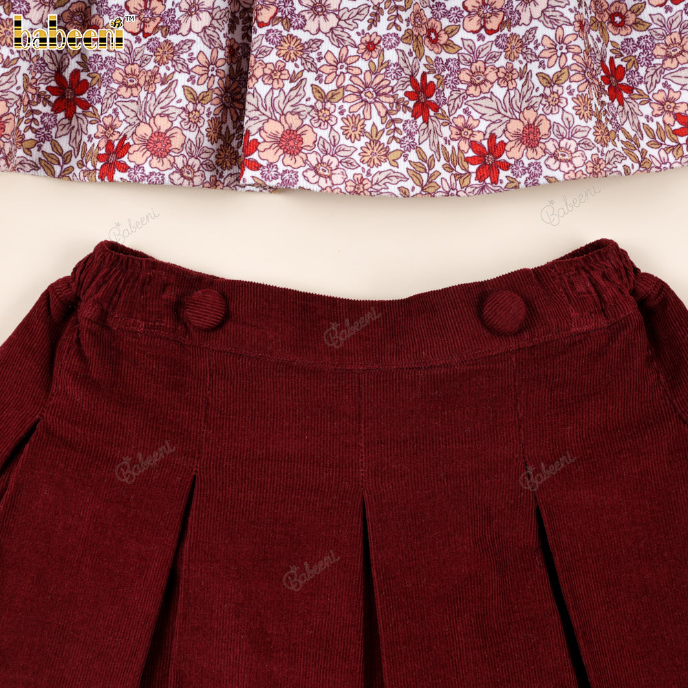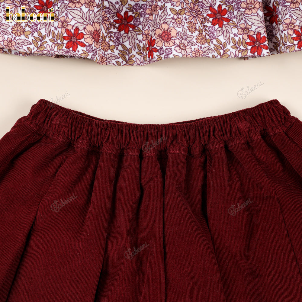 Girls' Corduroy Top & Velvet Skirt Set - VAG008