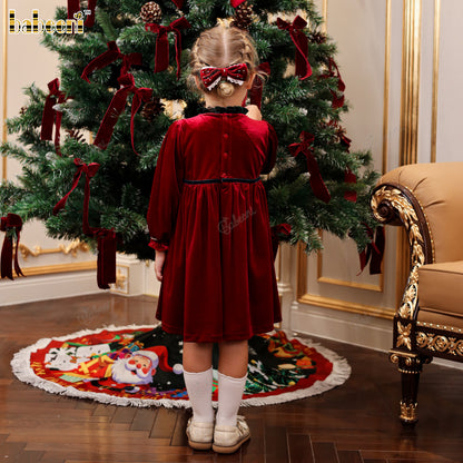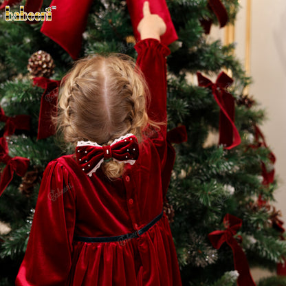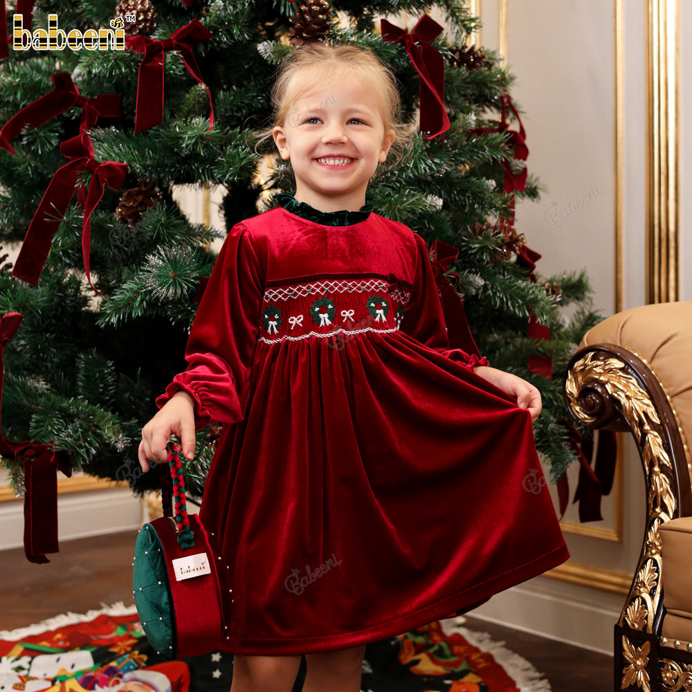 Girls' Velvet Holiday Dress with Smocked Embroidery - DR4295