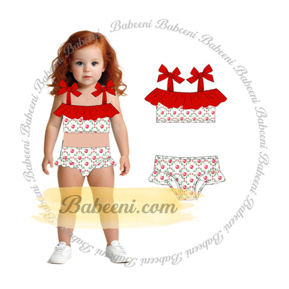 Feature: This two-piece swimsuit set is designed for girls who love to move freely while staying stylish. The detachable design includes a ruffle-trimmed top and matching printed bottoms, perfect for mixing and matching.