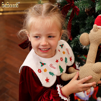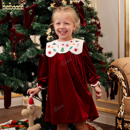 Girls’ Holiday Red Velvet Dress with Embroidered Floral Petal Yoke - DR4310