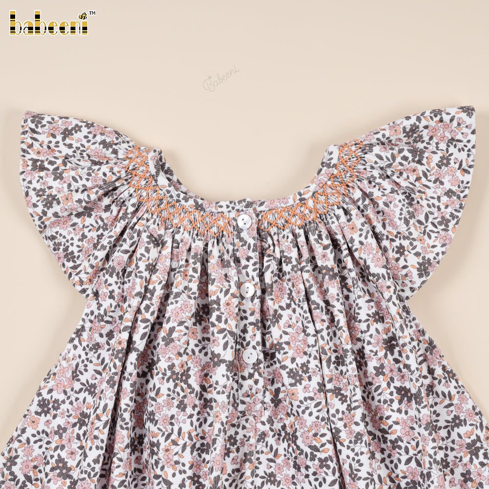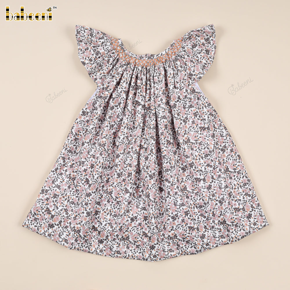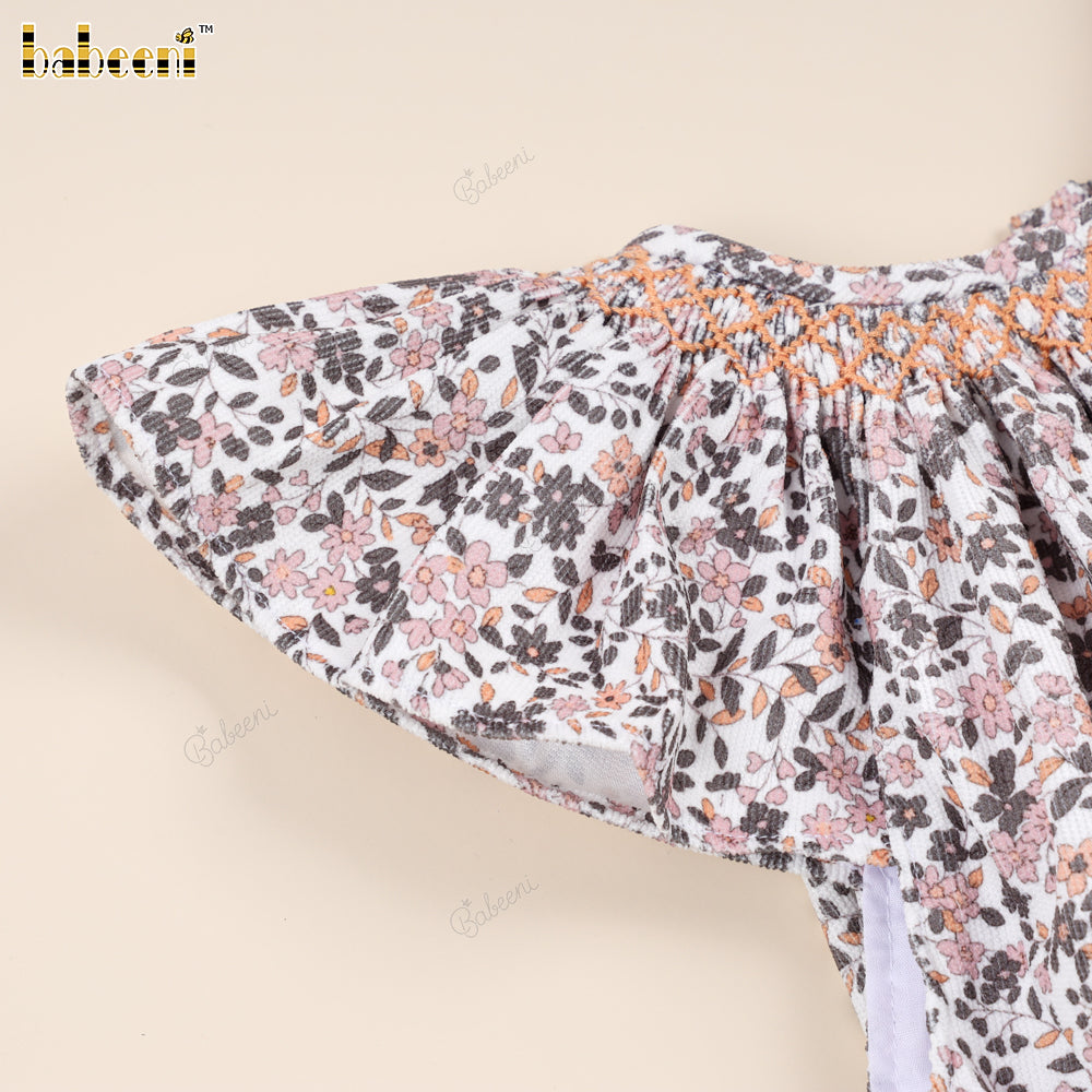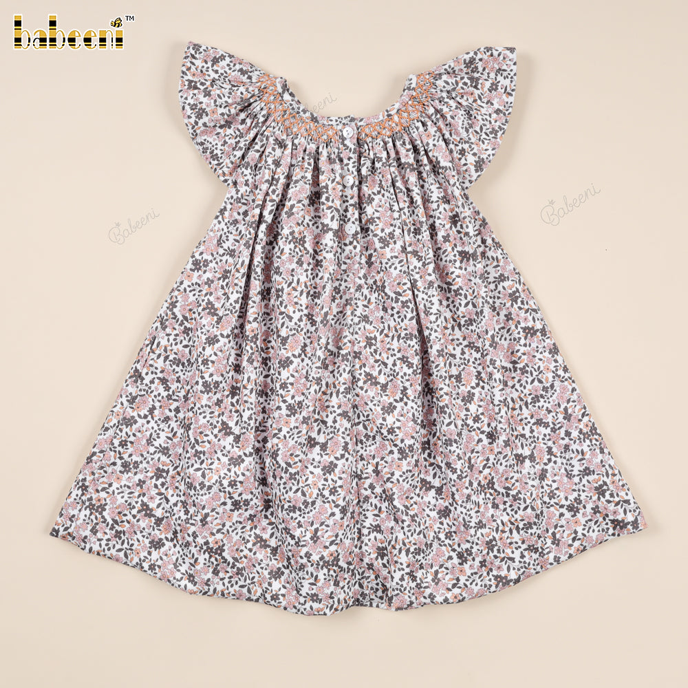 Hand-smocked Floral Flutter Sleeve Girl Dress - VAG002