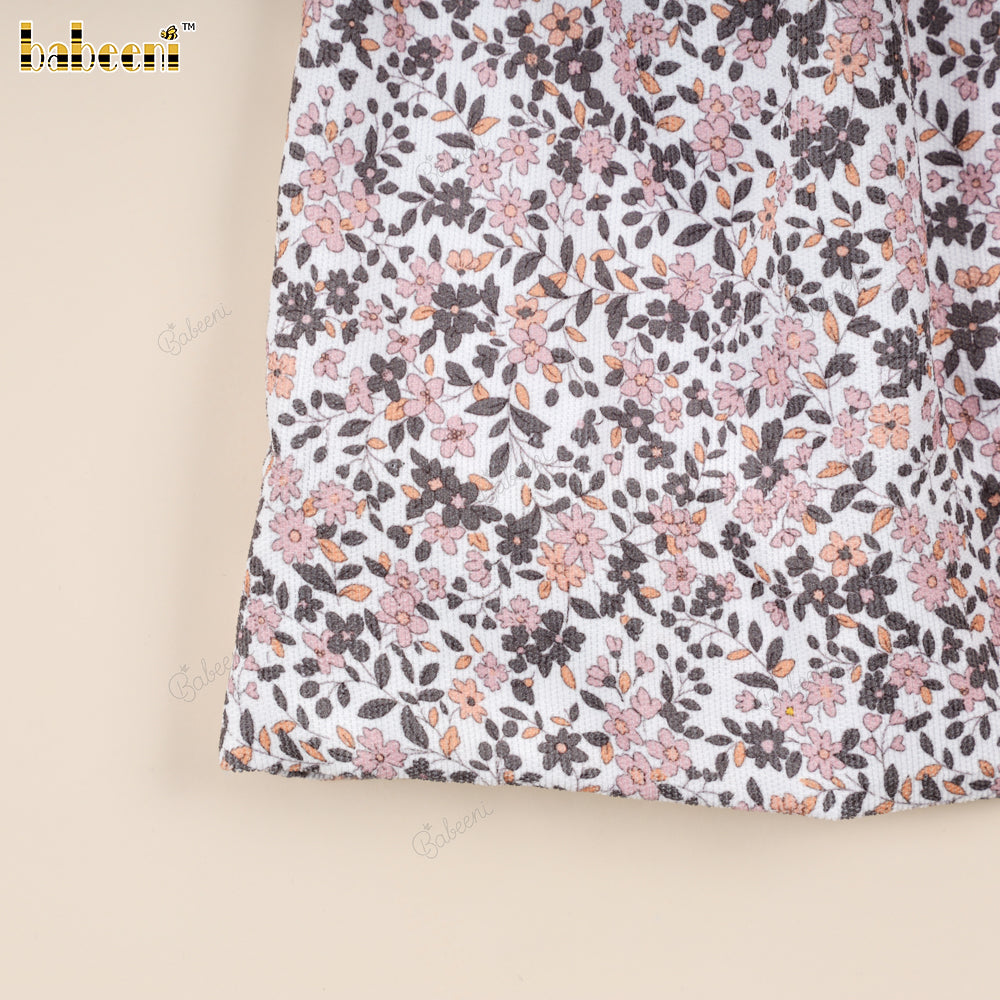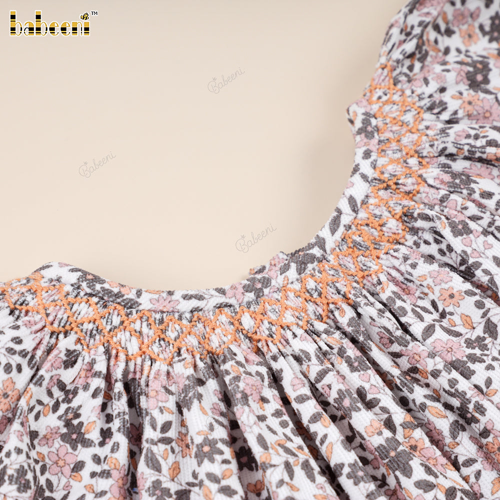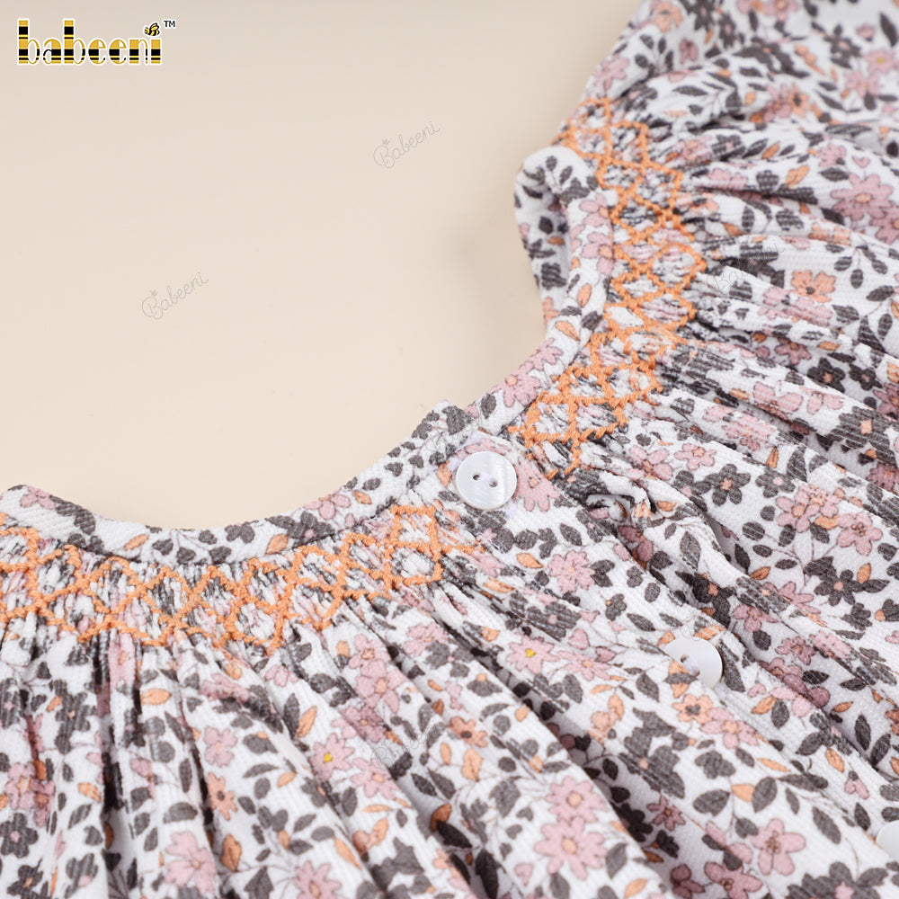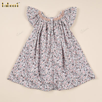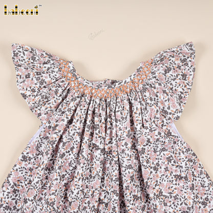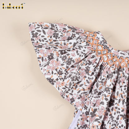 Hand-smocked Floral Flutter Sleeve Girl Dress - VAG002