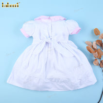 Honeycomb Smocked Dress In White And Pink Accent For Girl - DR3706