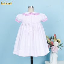 Honeycomb Smocked Dress Pink And White Flower Embroidery For Girl - DR3710