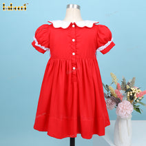 Honeycomb Smocked Dress Red Hand Embroidery Christmas Tree For Girl - DR3730