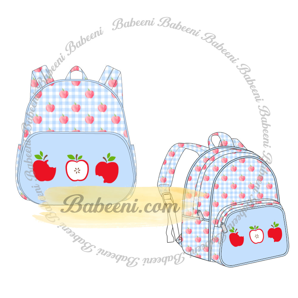 Boys' Gingham & Apple Embroidered Backpack - KB91