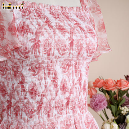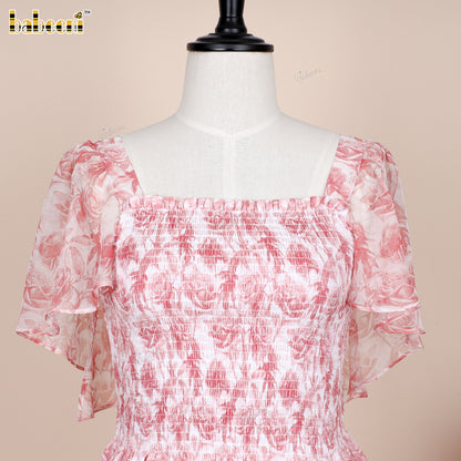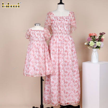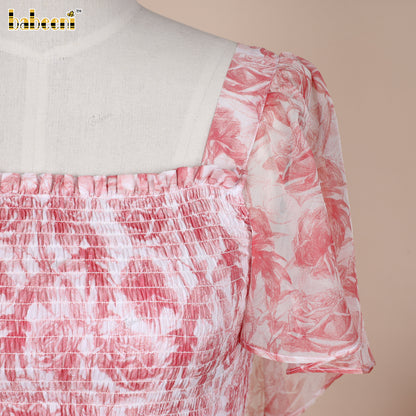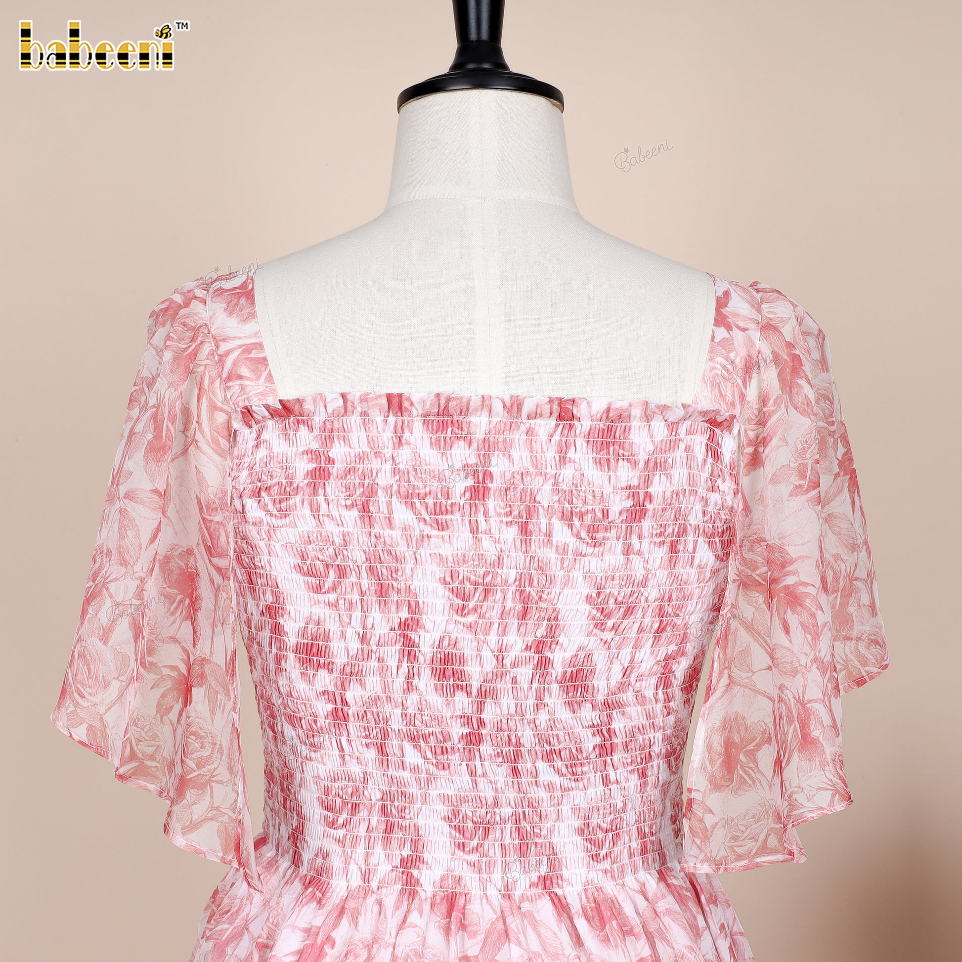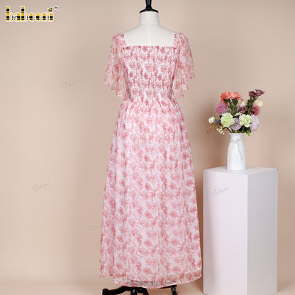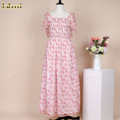 Feature: Graceful maxi dress crafted from light ECO-printed voile, featuring elastic shirring on the chest with a flattering square neckline and puff sleeves for timeless femininity.