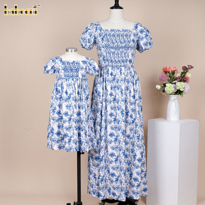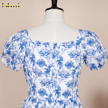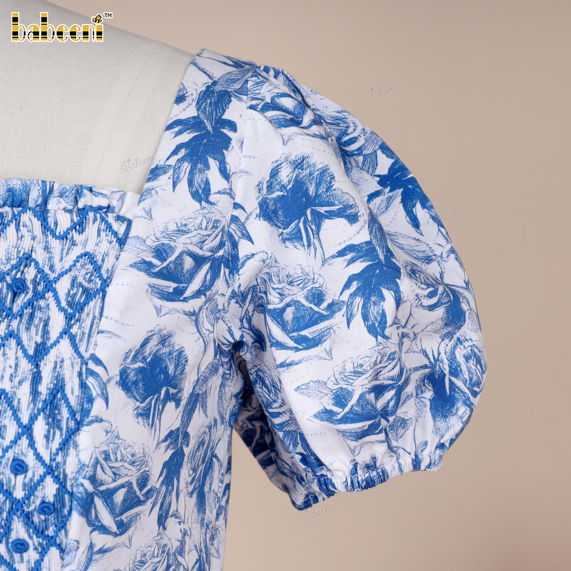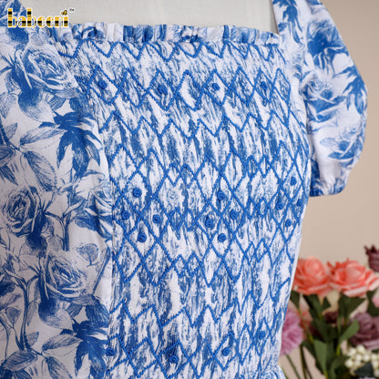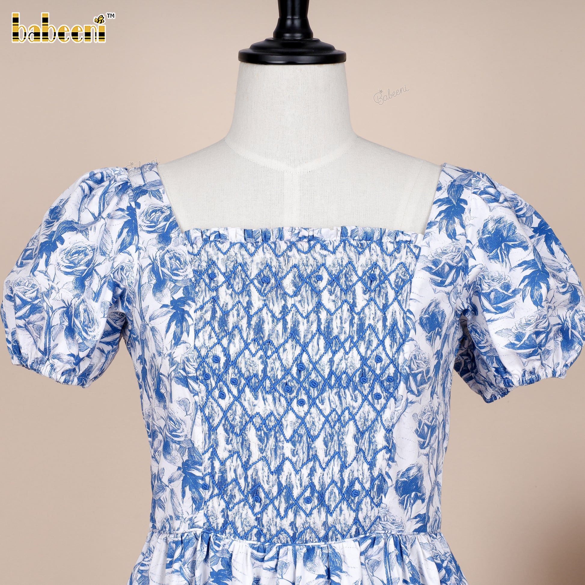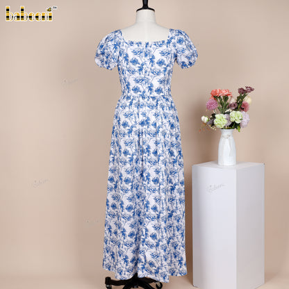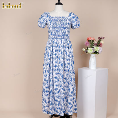 Feature: Elegant maxi dress crafted from new ECO-printed twill, featuring exquisite hand-smocked chest details and puff sleeves for a graceful silhouette.