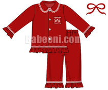 Feature: Girl smocked pajamas set with geometric smocked pattern on the chest, front pearl buttons