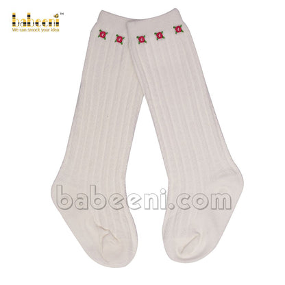 Nice baby embroidered flowers white socks- HS 02
