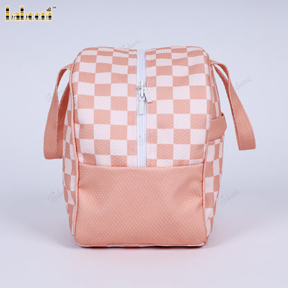 Feature: Quilted 4.0 plaid canvas with convenient outer and side pockets