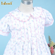 Plain Dress White Neck Pink Floral For Girl - DR3685