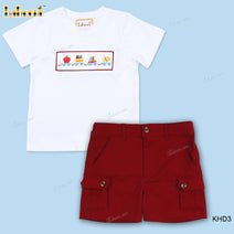 Smocked Back To School White Top Red Bottom For Boy - BC1126